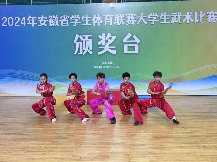 20241026日,安徽省学生体育联赛大学生武术比赛在阜阳师范大学顺利举行,本次比赛是安徽省教育厅和安徽省体育局主办,阜阳师范大学和安徽省学校体育协会承办。来自中国科学技术大学、安徽大学、安徽师范大学、合肥工业大学等全省42所高校运动健儿进行了11个单元的激烈角逐。