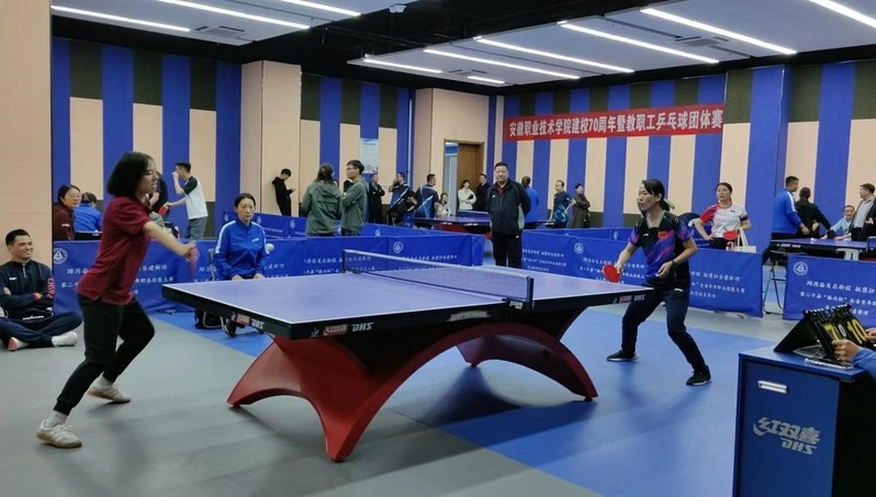 116日和13日,安徽职业技术学院建校70周年暨教职工乒乓球团体赛在学院至高体育馆一楼乒乓球室举办,体育健康学院教职工乒乓球队获得本次比赛冠军。