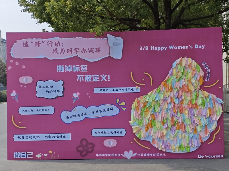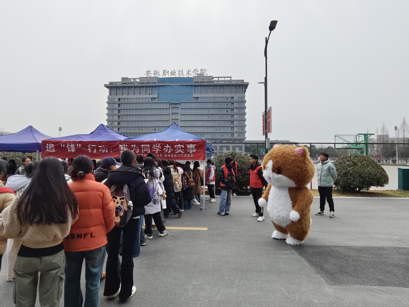在三月的春风里,学雷锋热潮涌动,值此之际,又恰逢三八妇女节来临,外国语学院与体育健康学院携手,于 3 月 7 日在皖韵楼食堂门口开启了一场意义非凡的 “追锋行动:我为同学办实事”活动,旨在以温暖行动传承雷锋精神,致敬身边的“她”力量。