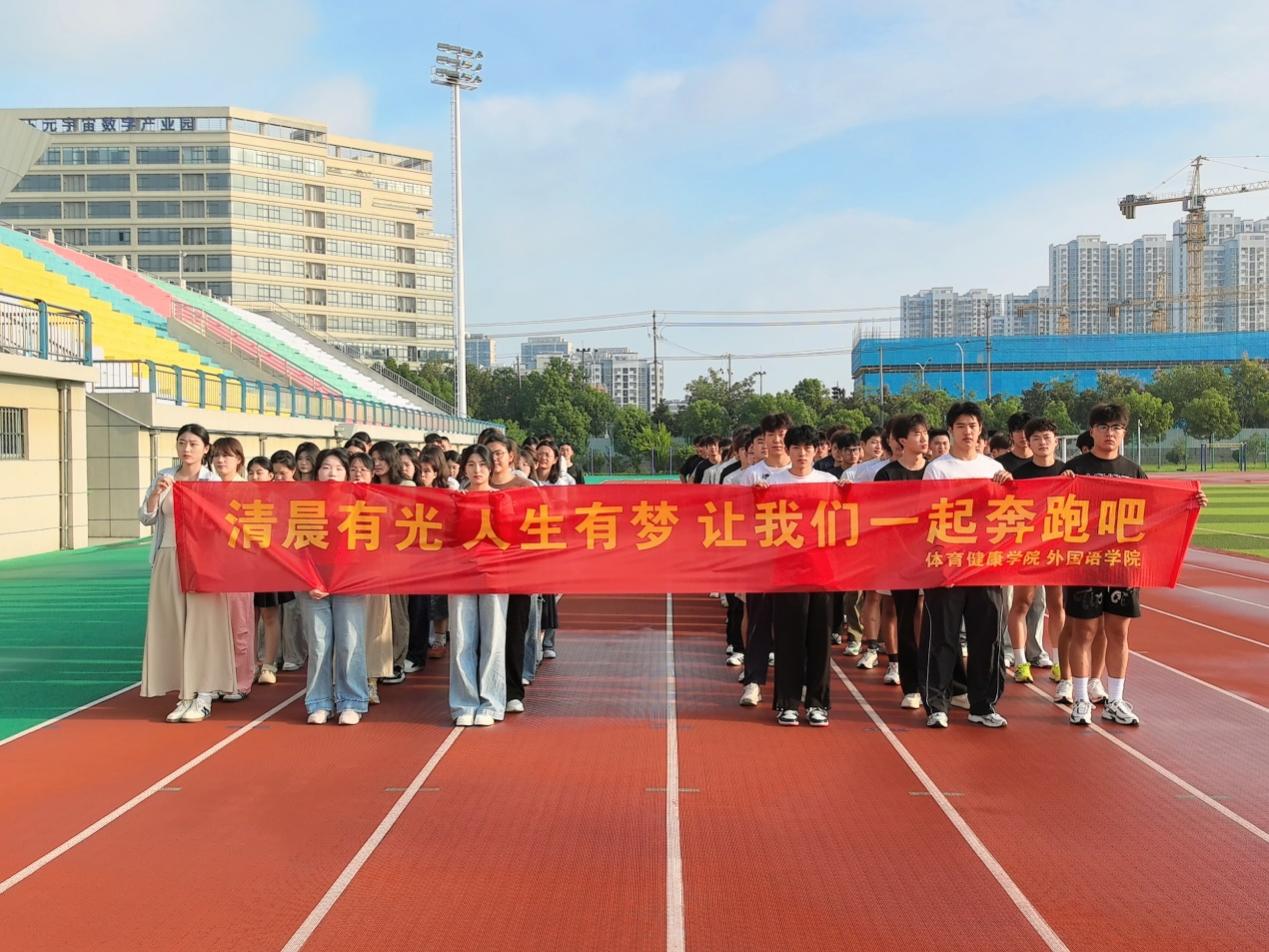9月12日,体育健康学院联合外国语学院开展“清晨有光 人生有梦 让我们一起奔跑吧”开学第一跑活动。两学院新生相约来到田径场,围绕田径场共同奔跑,在运动中增进友谊,展现安职大新青年的活力和风采。