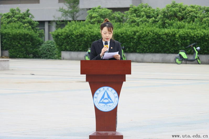 时代召唤担当,青春肩负使命。升旗礼毕,英语2122班王蕊作题为《以青春之名 续时代华章》的国旗下演讲。她带领同学们学习了党的二十大精神,号召同学们牢记习近平总书记的殷殷嘱托,感党恩、听党话、跟党走,学深悟透,笃行实干,锤炼想干事、能干事、干成事的本领,成为“眼中有光,脚下有路,肩上有责,心中有德”的安职青年。