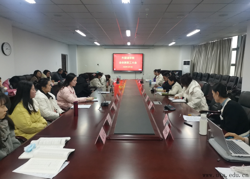 12月13日,外国语学院在图文信息中心13楼会议室召开全体教职工大会。会议由外国语学院党总支书记何晓皖主持,外国语学院副院长胡菁蕾和全体教职工参加了会议。