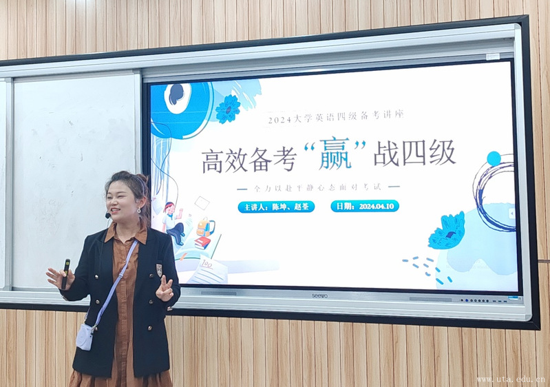 4月10日,外国语学院与院团委外语协会在明德101智慧教室成功举办了一场针对大学英语四级考试的专题讲座,旨在通过提供科学、系统的备考指导,助力学子们高效备考、"赢"战四级。本次讲座的主讲人为外国语学院的陈坤老师。
