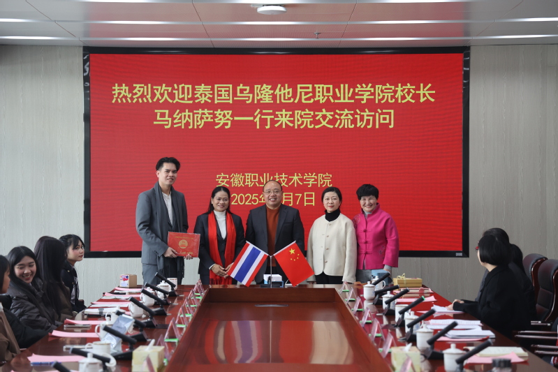 1月7日上午,学院接待了马纳萨努一行,并召开泰国留学生座谈会。李方泽对马纳萨努一行的到来表示热烈欢迎,他回顾了双方合作历程,对双方培养留学生的成绩表示了肯定,并希望两校共建的安徽职业技术学院行知学院泰国分校越办越好。马纳萨努对学院的热情接待表示感谢,充分认可了学院在留学生培养方面的成效,希望双方能够进一步合作。之后,双方互赠了礼物。