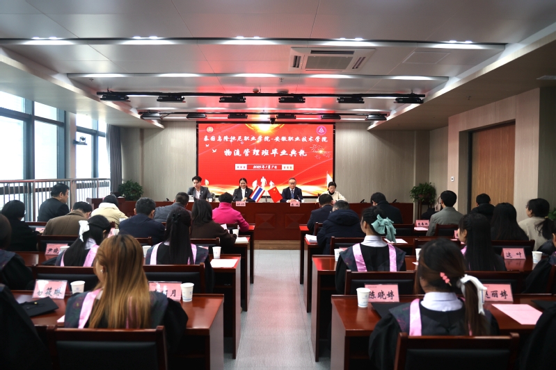 1月7日下午,安徽职业技术学院行知学院-泰国分校第二届留学生毕业典礼成功举办。盛鹏发表了毕业寄语,他指出留学生作为两国之间的桥梁,应积极促进文化的交流与融合,通过开放包容的态度,了解和尊重彼此的文化差异,增进相互理解和友谊,希望她们能够坚定梦想,勇于奋斗,志存高远,敢为人类进步的开拓者。马纳萨努在致辞中对学院表示感谢,对留学生未来的发展寄予厚望,并回顾了两校合作的历程,希望两校持续合作、友谊长存。