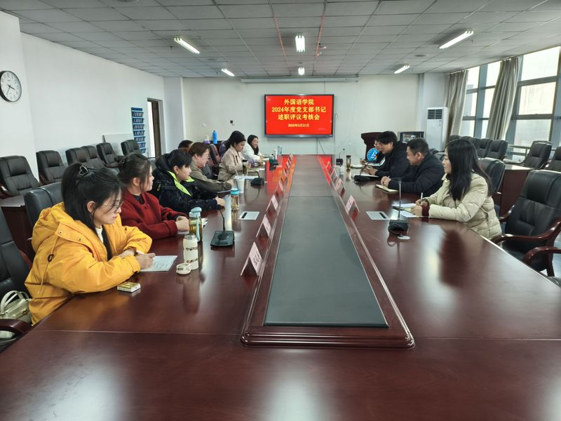 2月21日,外国语学院在图文信息中心十三楼会议室召开2024年度党支部书记述职评议考核会。会议由外国语学院党总支书记何晓皖主持,学生处处长左菁华,外国语学院副院长胡菁蕾和各总支、支部委员参加了会议。