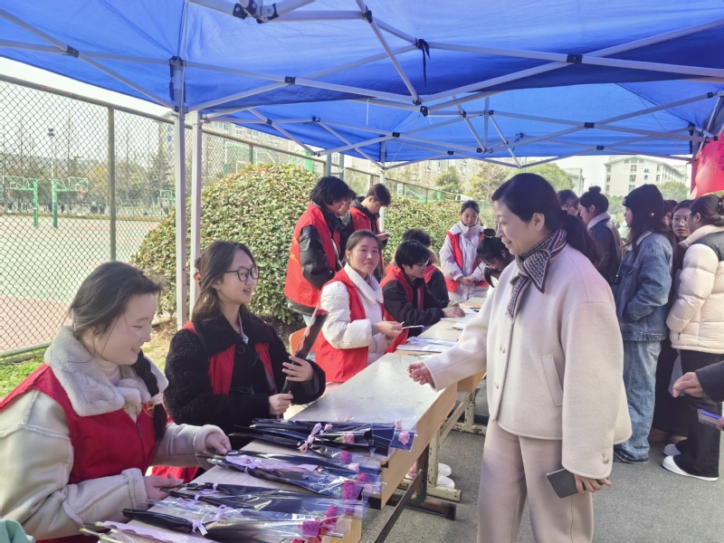 在三月的春风里,学雷锋热潮涌动,值此之际,又恰逢三八妇女节来临,外国语学院与体育健康学院携手,于 3 月 7 日在皖韵楼食堂门口开启了一场意义非凡的 “追锋行动:我为同学办实事”活动,旨在以温暖行动传承雷锋精神,致敬身边的“她”力量。