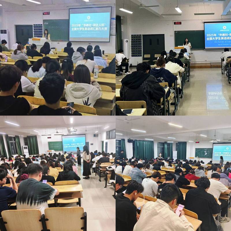 本次校赛于2025年4月16日19:00-20:00举行,分为本科非英语专业、高职高专非英语专业和高职高专英语专业三个组别,报名人数1000多人,设置7个考场,比赛现场秩序井然。经过激烈角逐,学院73名同学确定入围省赛。