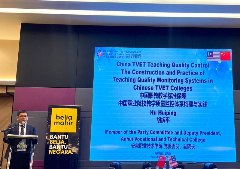 会议以落实中外职业技术教育合作“210工程”为纲领,以“提升全球竞争力”为主题,围绕中马两国职业教育生态、职业院校与行业协同发展、职业教育国际认证、技能人才赋能中资产业需求、数字教育技术构建全球职教合作新网络、中国职教教学标准保障等议题开展交流研讨。会上,胡辉平作了《中国职业院校教学质量监控体系构建与实践》的专题报告,系统阐述了我国职业教育从规模扩张走向内涵式发展的转型路径以及政校行企多方协同构建的教学质量监控体系,重点介绍了我院近年来的改革奋进成果以及在教学质量监控方面的特色做法与成效。