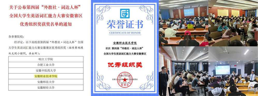 学院荣获 “外教社・词达人杯” 大赛安徽赛区优秀组织奖 校赛成果丰硕