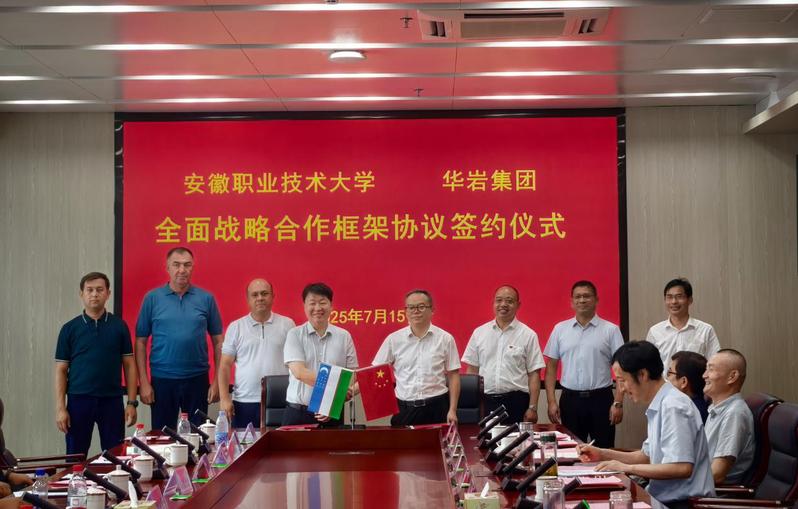 在市长代表团见证下,76net必赢线路检测中心与华岩集团“两区一园”产业园正式签署战略合作协议。协议明确三项核心任务:一是共建“中乌国际学院”,定向培养汽车工程、智能制造技术人才;二是开设“华岩中亚班”,为入驻华岩产业园的中企输送双语技能型员工;三是联合开发乌兹别克斯坦行业职业标准,推动中国职教标准“走出去”。签约仪式后,校方向乌方赠送徽派非遗工艺品“迎客松”铁画,象征文化互鉴与友谊长存。