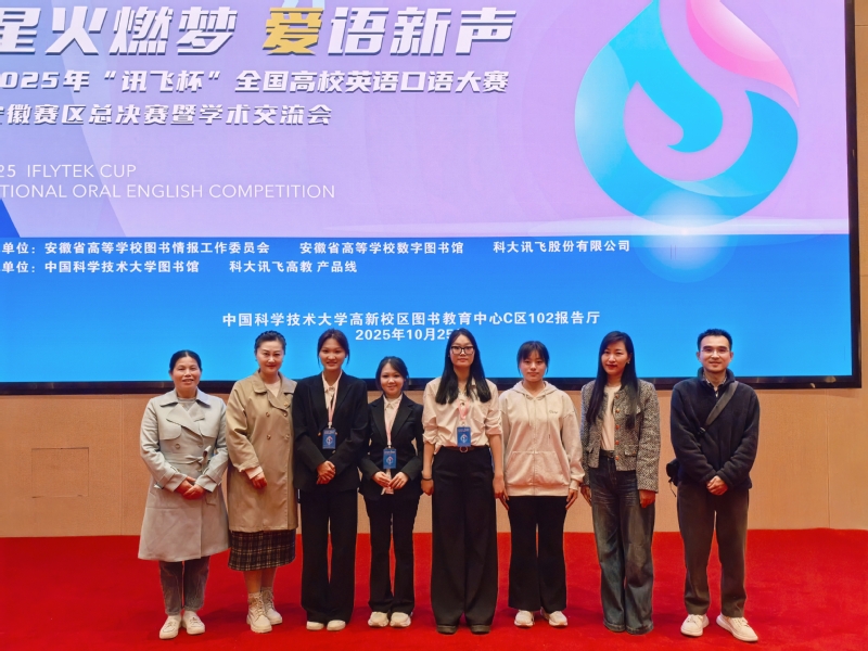 10月25日,“讯飞杯”全国高校英语口语大赛安徽赛区比赛在中国科学技术大学(高新校区)降下帷幕。经过初赛、复赛和决赛的三轮激烈角逐,学院两组参赛学生(鲁慧霞、张冕,周洪远、殷如婷)凭借扎实的英语语言表达与出色的临场表现脱颖而出,成功斩获安徽赛区高职高专组特等奖和二等奖。