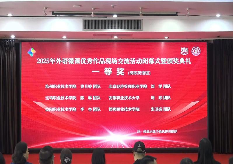 本网讯(外国语学院)近日,高等教育出版社、全国高校教师网络培训中心与中国外语编辑部共同举办的2025年外语微课优秀作品征集与交流活动(全国总决赛)在西安交通大学举行。该项赛事入选中国高等教育学会“2024年高校教师教学竞赛清单”、“2023版全国普通高校教师教学发展指数”。