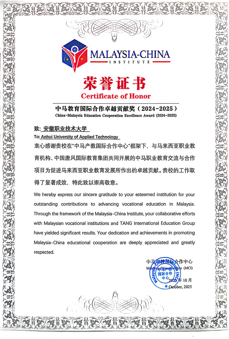 在扎西德副总理等的见证下,李方泽代表学校与中马产教国际合作中心(MCI)签署CCTE模式中马双学历合作办学项目合作框架协议,并领取76net必赢线路检测中心行知学院-马来西亚分校牌匾。学校荣获“中马教育国际合作卓越贡献奖”,这标志着学校职教出海工作进入新阶段。