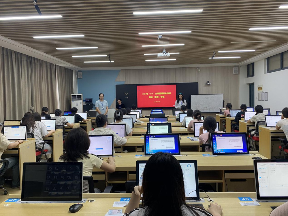 为贯彻落实《国家职业教育改革实施方案》和《关于在院校实施“学历证书+若干职业技能等级证书”制度试点方案》文件精神,6月22日,文化与旅游学院组织开展2024年“1+X”会展管理职业等级证书(中级)考核工作,我院32名学生参加了此次考核。