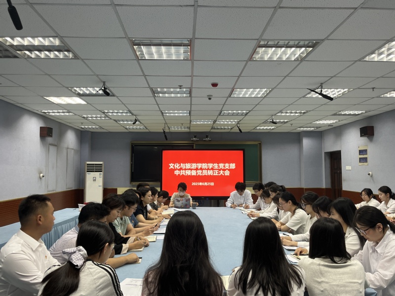 6月25日,文化与旅游学院学生党支部在图文409会议室召开支部大会,相继讨论25年上半年预备党员转正和接收事宜。学院党总支负责人徐李莉、全体党员及发展对象参加会议,会议由支部组织委员李丹丹主持。