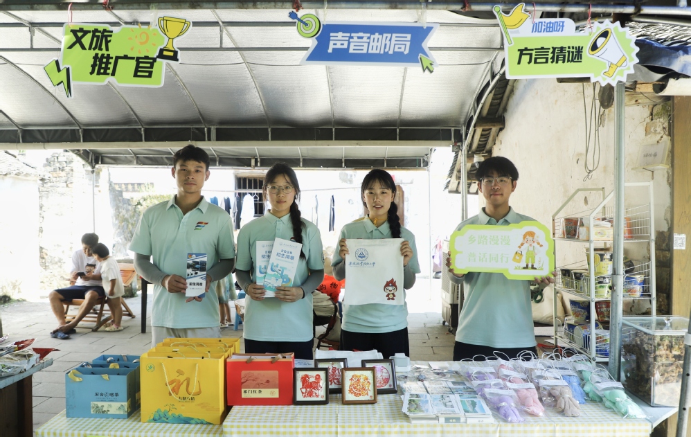 在牯牛降风景区的青石板路上,一场关于语言的奇妙对话正在上演。“方言猜谜”摊位前,游客们凝神细听皖南方言的谜面,转而用流利普通话揭晓答案,笑声与掌声此起彼伏。实践团创新设计的“声音邮局”更成为情感纽带,游客们对着麦克风用普通话录制家书,记录声波的二维码载着乡情飞越山海。“我们不是在消灭方言,而是搭建一座桥——让乡音留住根脉,让普通话打开视野。”团队成员邵梦杰道出活动深意。这场语言游戏背后,是当代青年对文化传承与时代需求融合的生动诠释。