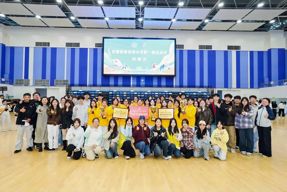 开幕式上,悠扬黄梅戏韵萦绕绿茵场,学子们水袖轻扬、身姿流转,将徽风皖韵的典雅厚重徐徐铺展,让入场式成为一场彰显文化自信的人文展演。随后的广播体操比赛中,同学们队列整齐、精神抖擞,规范有力的动作尽显青春朝气,以三等奖的佳绩展现了文旅学子优良的纪律作风与精神风貌。