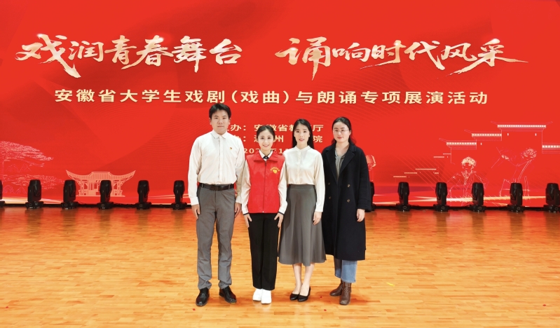 11月21日,由安徽省教育厅主办、滁州学院承办的全省大学生戏剧(戏曲)与朗诵专项展演活动在滁州学院会峰校区圆满落幕。本次活动以“戏润青春舞台,诵响时代风采”为主题,汇聚安徽大学、安徽师范大学等11所高校的11个优秀作品同台绽放,必赢文化与旅游学院胡子童、胡俊怡、李袁慧三位同学带来的朗诵作品《以你为镜》,作为获评一等奖的优质佳作入选现场展演,尽显必赢学子的艺术风采与青春担当。