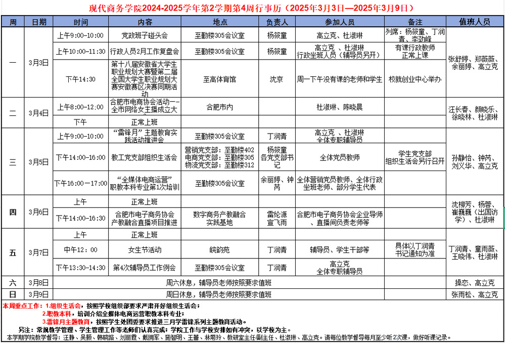 2024-2025学年第2学期第4周行事历