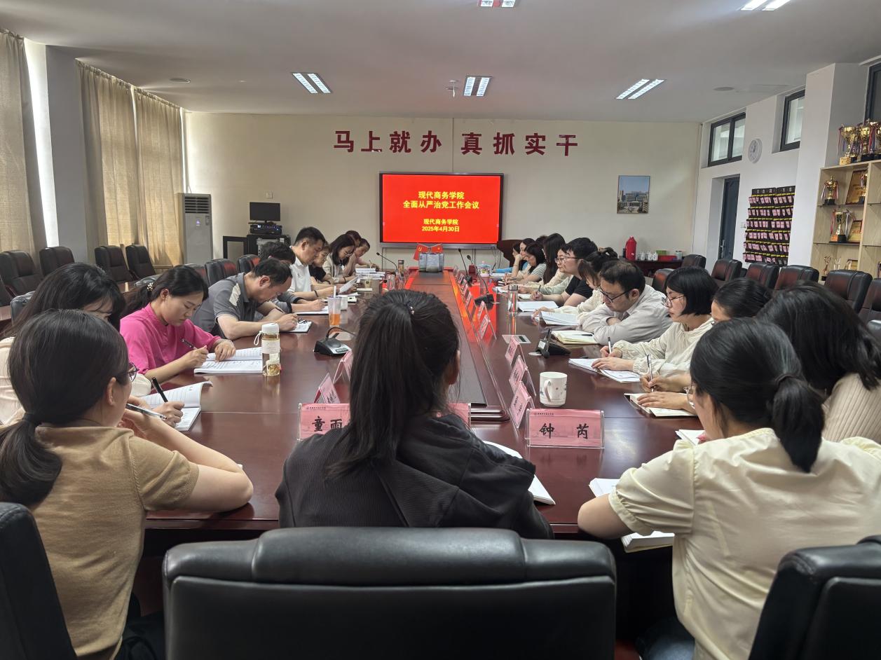 4月30日中午,现代商务学院在至勤楼305会议室召开全面从严治党工作会议,深入学习贯彻习近平总书记关于党的自我革命的重要思想,认真落实全省教育系统全面从严治党工作会议精神以及学校全面从严治党工作会议精神,部署2025年学院全面从严治党重点工作任务,对深入贯彻中央八项规定精神学习教育进行动员。学院党政负责人及教职工参会,会议由学院党总支书记高立克主持。