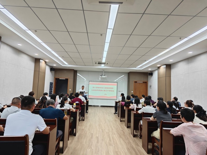 为推动深入贯彻中央八项规定精神学习教育走深走实,进一步加强党风廉政建设,根据校党委工作安排,6月25日下午,校党委委员、纪委书记李荣富深入体育健康学院,开展“深入贯彻中央八项规定 以优良作风凝心聚力干事创业”专题党课。体育健康学院和现代商务学院全体教师党员参加,体育健康学院党总支书记张在腾主持。