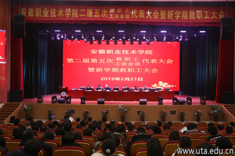 本网讯(校办通讯员  孙涤平)一元复始,万象更新。 2月21日上午,学院在大学生活动中心隆重召开新学期教职工大会。党委书记亓四华,党委副书记、校长孙敬华,党委副书记、纪委书记郭淼,党委委员、副校长史锋,党委委员、副校长陈行,党委委员马纯、杨林国及全校教职工近700人参加了大会。会议由党委副书记、纪委书记郭淼主持。