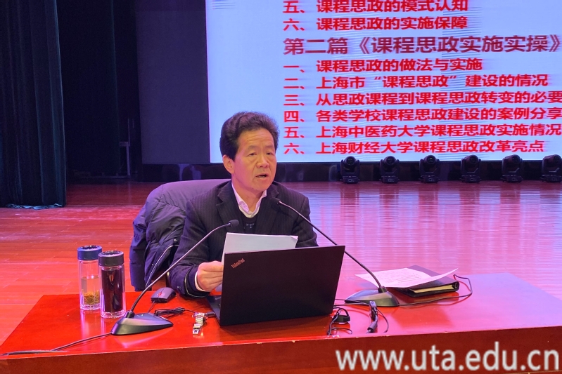培训会上,章忠民以《从思政课程到课程思政》为题,从课程思政理论理念和课程思政实施实操两个方面做了课程思政的经验分享。在课程思政理论理念方面,章忠民从战略目标和现实途径、社会主义大学人才培养的宗旨、从思政课程到课程思政、课程思政的指导思想、课程思政的模式认知、课程思政的实施保障等六个方面做了详细阐述。他从理论和实践层面厘清了思政课程和课程思政的关系,分析了思政课程和课程思政的共同点和不同侧重点。章忠民在报告中指出,思政课程和课程思政的核心内涵都是育人,两者的本质联系主要体现在目标的共同性、方向的一致性、功能的同向性、内容的契合性。思政课程和课程思政在思政内容、课程地位、课程特点和思政优势等存在区别。在课程思政实施实操方面,章忠民介绍了上海市高校课程思政“三圈三全十育人”的思政体系做法,并分享了上海中医药大学、上海财经大学的课程思政实施案例。