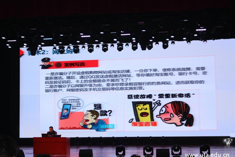 12月9日下午,由磨店派出所主办,校保卫处、学生处、团委承办的反电信诈骗专题讲座在大学生活动中心进行。各二级学院专职辅导员,2019级、2020级各班级学生和干部代表,2019级、2020级全体新疆民族学生,保卫处、学生处、团委全体人员参加了此次活动。活动邀请磨店派出所所长焦长俊担任主讲,讲座由保卫处王胜璋主持。