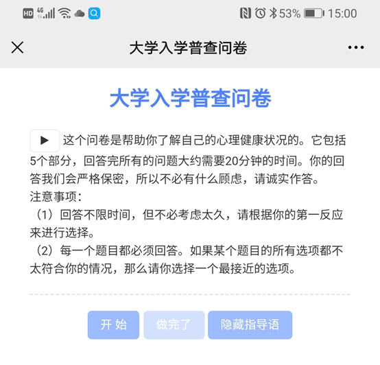 为深入贯彻落实教育部(教思政厅函[2021]10号)、省教育厅《关于做好2021秋季学期高校学生心理健康教育工作的通知》文件精神,全面掌握学生心理健康状况,增强学生心理健康意识,不断提高必赢大学生心理育人水平。现决定于2021年9月23日至9月29日开展2021级所有新生心理普查工作,请各二级学院接此通知后,及时安排本院新生按时参加测试。