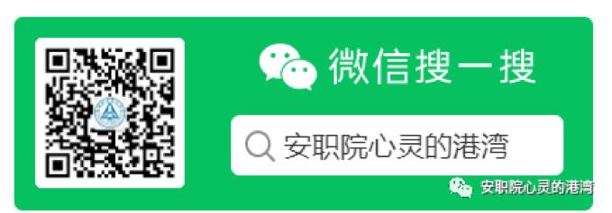 同学们可关注心灵的港湾微信公众号:扫描下面二维码或搜索微信号(安职院心灵的港湾)。点击对话框右下方的联系我们,再点击预约方式和时间,阅读、了解预约相关事项,然后点击进行预约,选定可用的预约时间段,并备注自己的QQ号等相关真实信息。在预约时间段可选文字、语音或视频方式进行咨询。每次咨询时间50分钟左右。