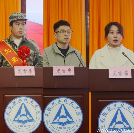 大会现场,预定新兵们身着迷彩军装,肩披绶带、胸戴红花,精神抖擞,展现出安职青年“报党报国报家乡” 高昂士气。仪式在嘹亮的国歌声中拉开帷幕。宣岩松代表学院向即将步入军营的新兵们表示热烈祝贺。他勉励大家要牢记使命,坚定理想信念,要持续努力学习,不断提升综合素质;要坚持刻苦训练,不断增强个人本领;要从严自我要求,成为遵守纪律的模范,在军队这个大舞台上施展才华,在军营这个大熔炉里淬炼成钢,结合所学专业在军队建功立业,书写绚烂、无悔的青春篇章。