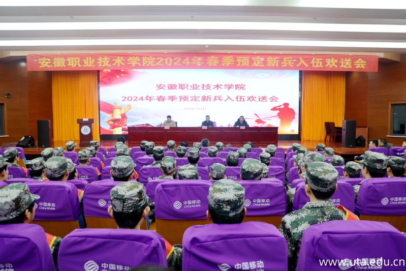 “筑梦军营,光荣启程”,3月5日下午,学院在图文信息中心三楼报告厅隆重举行2024年春季预定新兵入伍欢送会。学院党委委员、副院长宣岩松出席会议,保卫处负责人、各二级学院党总支负责人、辅导员代表、家长代表及61名预定新兵参加本次活动。会议由学生处负责人主持。
