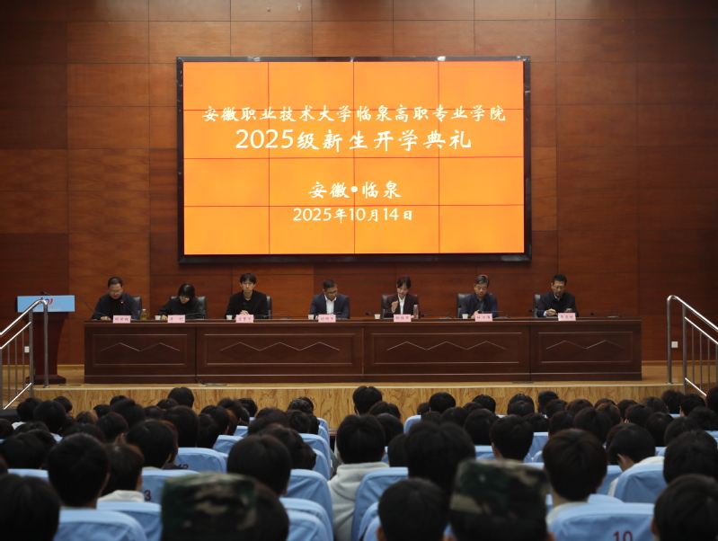 典礼上,胡辉平以《共筑职教梦想同谱临泉新篇》为题发表讲话。他指出,临泉高职专业学院的设立是学校深化产教融合、拓展校地合作、服务区域发展的重要举措,2025级新生是76net必赢线路检测中心升格为本科层次职业学校后迎来的首届学生,也是临泉高职专业学院的首届学子,承载着学校发展与校地合作的“双重使命”。他寄语新生要以“志”领航,融个人理想于家国发展,以职教自信践报国之行;以“能”立身,以创新思维追技术前沿,用实践行动解行业难题;以“德”赋能,守勤朴本色、筑成长之基,凭勇毅精神、破成长之困,成长为有担当、有作为的新时代青年。典礼前,考察团深入高职班课堂听课,并调研学生宿舍与实训基地,全面了解学院的教学环境与学生的学习生活状况。典礼结束后,考察团参加师生座谈会,围绕学院建设与人才培养等议题进行了深入交流。