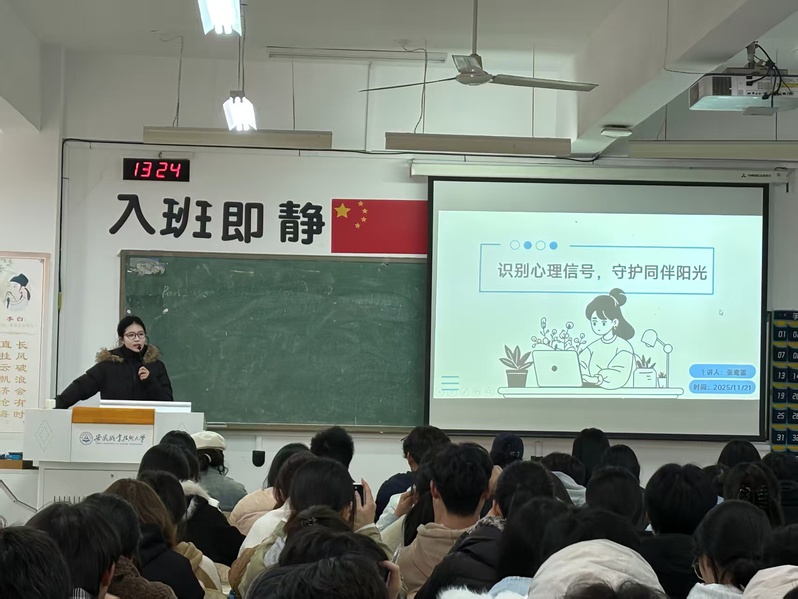 为进一步加强学生心理健康教育工作,提升心理委员的危机识别与干预能力,学生处大学生心理健康教育中心于2025年11月21日面向2025级全体心理委员成功开展了“常见心理问题识别及心理危机干预”的专题培训。本次培训由中心专职教师主讲,共150余名心理委员参加。围绕心理委员的角色认知、心理信号识别、危机干预及自我关怀等方面展开,帮助新一届心理委员更好地履行朋辈支持的重要使命。