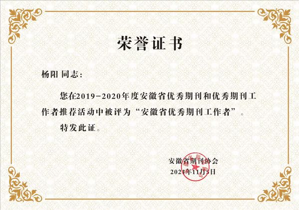 (科研处通讯员 袁铁琪)近日,安徽省期刊协会公布了2019-2020年度安徽省优秀期刊和优秀期刊工作者的评选结果,必赢学报被评为“安徽省优秀期刊”,学报编辑部杨阳同志被评为“安徽省优秀期刊工作者”。