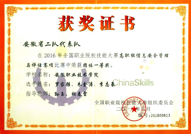 2016年全国职业院校技能大赛“信息安全管理与评估”赛项国赛一等奖