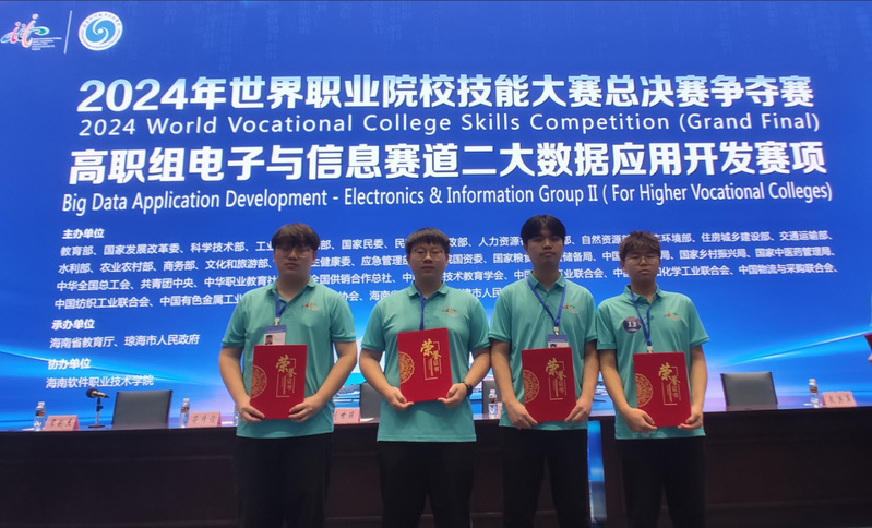 由黄如兵、刘晓川担任指导老师,徐佳乐、林成楷、薛猛、武优四位同学组成的代表团队,以“电商数据智能分析系统”为参赛项目,夺得“大数据应用开发”赛项铜奖;由范莉花、谢翠琴担任指导老师,汤雨、王浩天和杨明宇三位同学组成代表团队,夺得“5G组网与运维赛项”铜奖。
