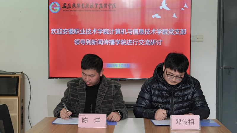 为进一步加强院校间党支部的交流与合作,共同探索党建工作新路径。1 月 3 日,安徽职业技术学院计算机与信息技术学院学生党支部前往安徽广播影视职业技术学院明德育人馆进行参观交流活动。在交流座谈会上,计算机与信息技术学院电子通信学生党支部与安徽广播影视职业技术学院新闻传播学院第一学生党支部签订了党支部联盟共建协议。