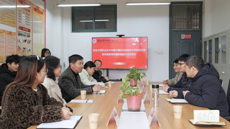 在参观结束后,安徽职业技术学院计算机与信息技术学院学生党支部与安徽广播影视职业技术学院新闻传播学院学生党支部共同开展了交流座谈会。会上,双方就各自党支部的建设情况、特色做法以及面临挑战等方面进行了深入交流。