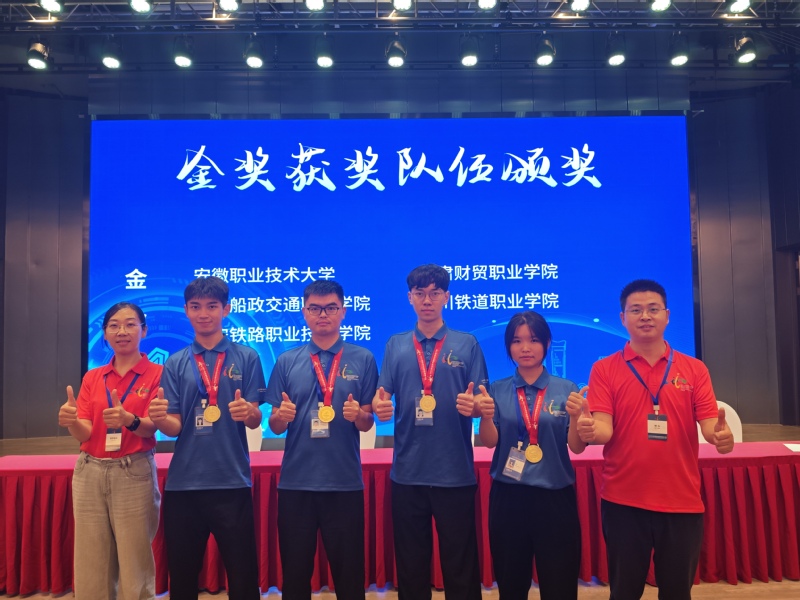 参赛学生陈亚乔、赵未时、骆文智、赵丽在指导教师黄如兵、毕佳佳的带领下经过激烈角逐,在众多参赛队伍中脱颖而出,以小组第一、赛点总分第一的好成绩荣获高职组金奖。学生章嘉诚、张嘉乐、陈延瑞、李梦圆也以优异表现获得职业本科组铜奖的好成绩。
