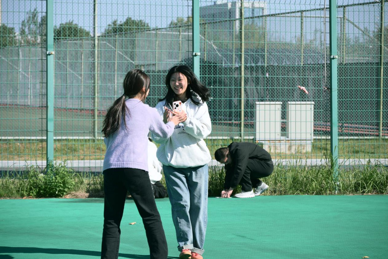 操场英语活动是学校行走的课堂系列实践之一,通过将体育场地转化为语言实践空间,既落实了五育融合理念,让学生在运动中感受语言魅力,在协作中提升跨文化沟通能力,又为中外合作办学项目打造了随处可学、随时能用的语言习得环境。(图/文 陈梦旋)