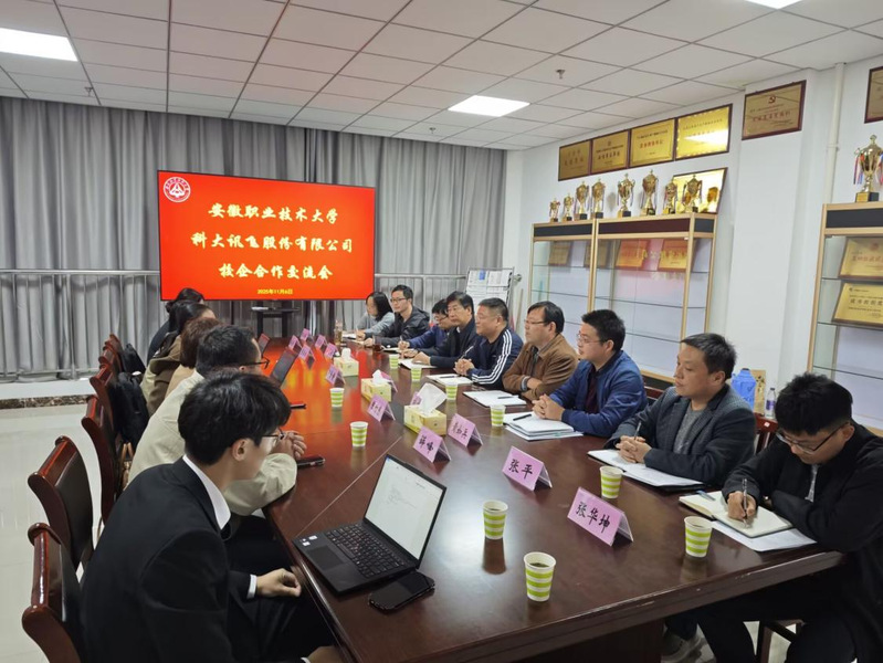 周玉强对来访公司领导表示热烈欢迎,并详细介绍了计信学院的基本概况。他强调,作为首批职教本科专业招生学院,一直高度重视校企合作与产教融合。希望通过与科大讯飞的深度合作,充分发挥企业在技术、资源和行业经验方面的优势,以技术赋能为关键抓手,推动产教深度融合,助力职教本科专业建设迈向更高水平,共同为培养适应产业发展需求的高端技能人才贡献力量。胡继胜、李军、黄如兵分别就目前学院在职教本科专业建设、新一代产业学院实训室建设、人才培养、师资建设、技术服务合作遇到的难题和挑战提出问题,希望通过与企业负责人共同探讨交流,合作寻求解决方案。