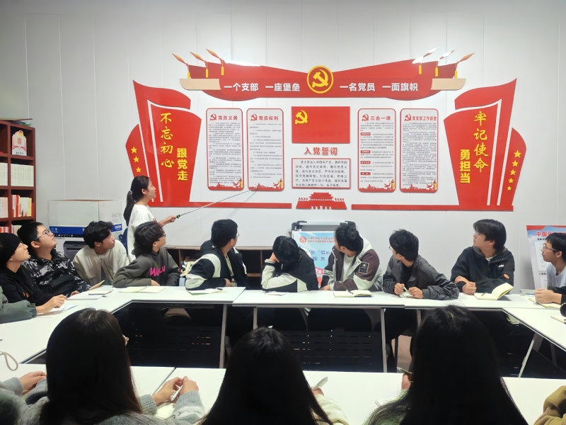 理论学习环节,全体同学聚焦党建理论核心,深入学习《习近平谈治国理政》第五卷,并共同研读党员义务与权利。通过互动交流与深度思考,大家进一步深化对党员身份的责任认知,强化“为人民服务”的宗旨意识,纷纷表示将以党员标准严格要求自己,在日常中践行初心使命。活动最后,辛晨同学现场开展“学习强国”学习平台推广指导,详细介绍平台的资源优势与使用方法,同学们积极响应,纷纷注册下载,计划将理论学习融入日常生活,持续提升思想觉悟与知识储备。