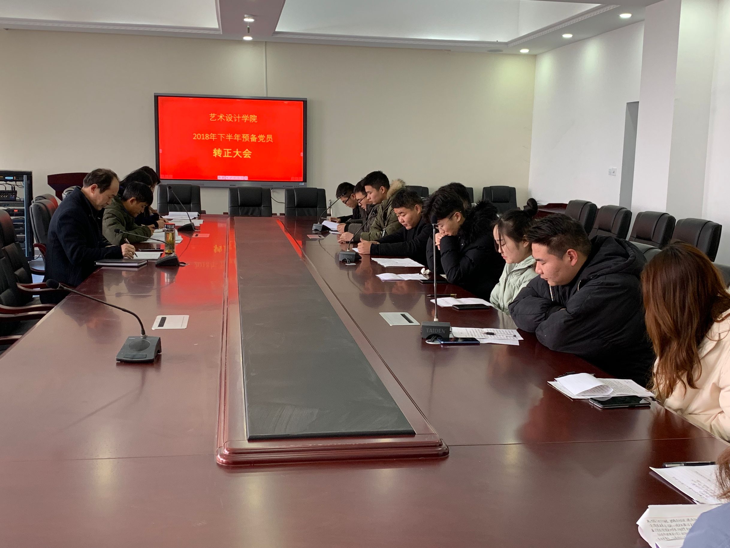 2018121412:30,艺术设计学院学生党支部预备党员转正会议在学院会议室召开。艺术设计学院党总支书记潘瑞春、学生党支部书记王蕊、组织委员郑德元、宣传委员张婷及全体党员参加了此次会议。会议由支部书记王蕊主持。