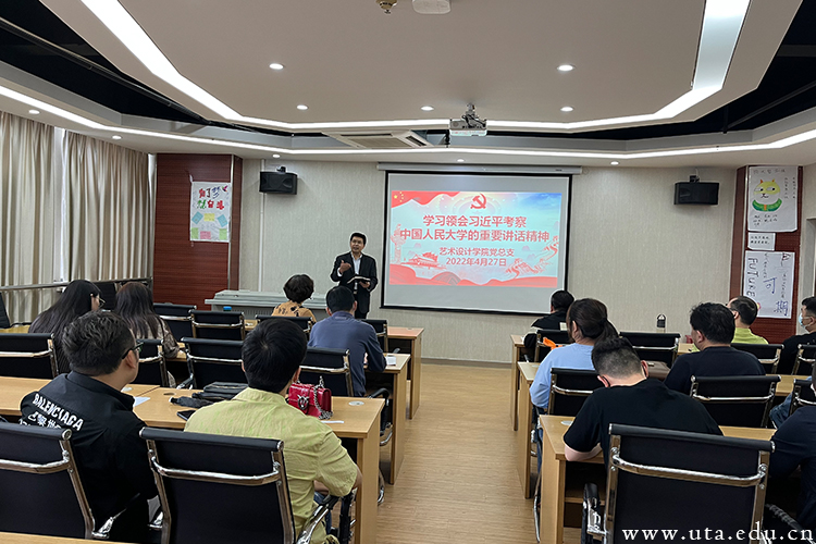 4月27日,艺术设计学院在图文信息中心5楼会议室召开习近平总书记在中国人民大学考察重要讲话精神专题学习会。学院党政负责人闫冰、吕慧和全体教职工参加会议,会议由闫冰主持。