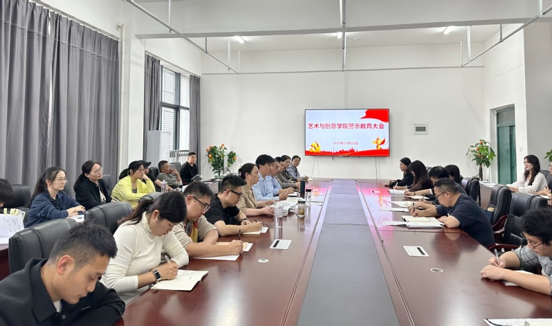 为进一步强化师德师风建设,弘扬教育家精神,以案为鉴、以案示警、以身边人为镜,10月16日下午,艺术与创意学院在至明楼五楼会议室召开警示教育专题会议。学院党政负责人左菁华、张文徽及全体教职工参会,会议由党总支书记左菁华主持。