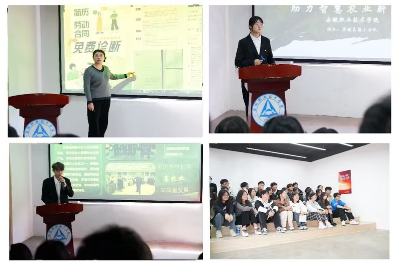 活动现场,贾佳带领同学们参观了“一站式”学生社区,同时介绍了“安佳乐业”工作室的建设目标,讲解了创新创业大赛的类型和影响力,并面向学生提供免费的职业咨询和简历门诊助力学生发展。活动现场,学生团队带着他们的创意项目纷纷登台展示,通过PPT现场路演,将项目的核心价值、市场潜力以及未来规划清晰地呈现在观众面前。在互动问答环节,同学们积极提问,项目团队耐心解答,双方就项目的可行性、创新点、市场定位等方面进行了深入交流,鼓励学生们积极参与大赛,通过实践来锻炼自己的创新思维和能力。活动最后,孔祥喆对活动的育人效果表示肯定,并就工作室后期工作推进进行了具体指导。