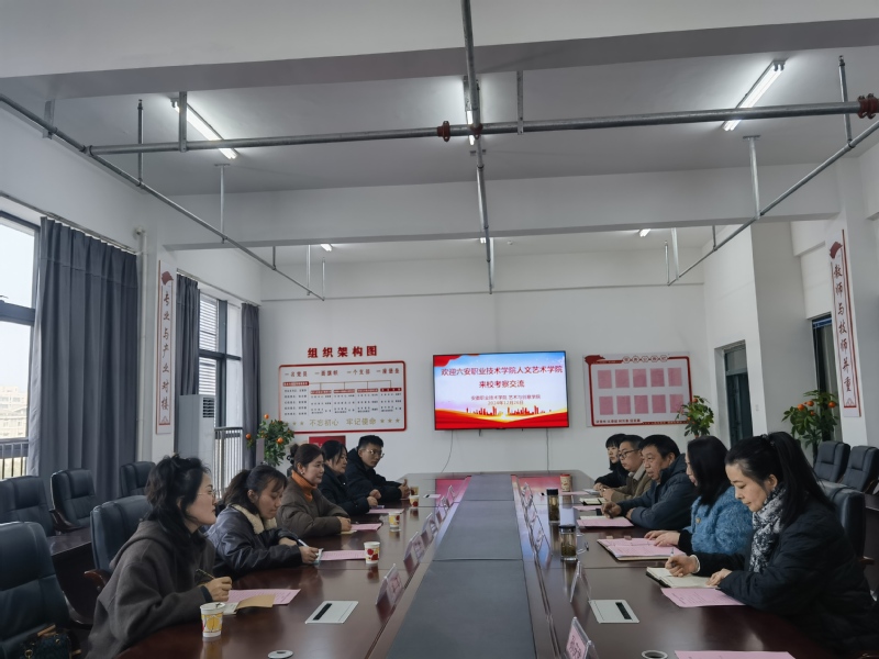 2024年12月26日下午,六安职业技术学院人文艺术学院史冬房院长一行莅临我院进行考察交流。此次交流活动由艺术与创意学院院长张文徽主持,总支书记李仿民致欢迎词,学院教研室主任等相关人员参会。