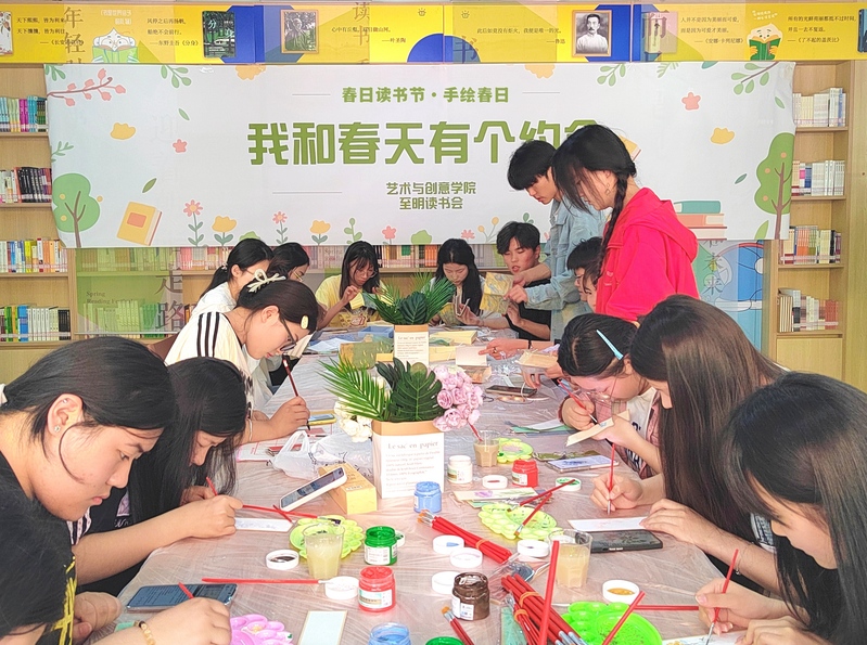 春风拂面,书香满园。425日,艺术与创意学院于一站式学生社区开展“我与春天有个约会”活动。活动通过“手绘书签”“创意书灯”“二手书漂流”三个项目,将艺术创作与阅读文化深度融合,为春日校园增添了一抹灵动的色彩。艺术与创意学院党总支书记李仿民、组织员喻言、全体专职辅导员和部分学生参与此次活动。